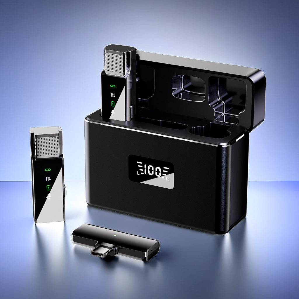 Dual Wireless Mics: Record crystal-clear sound from two speakers simultaneously—ideal for interviews, podcasts, or group content.